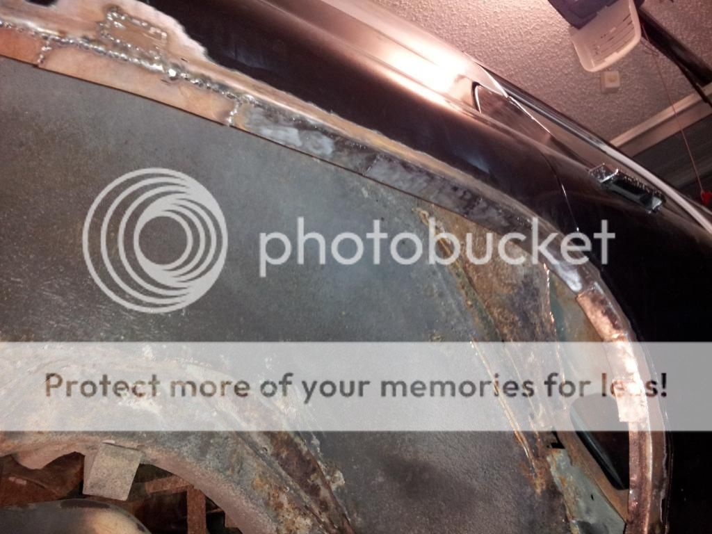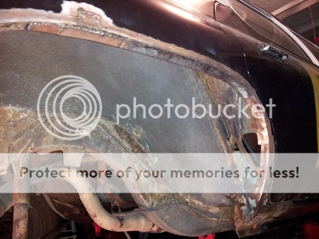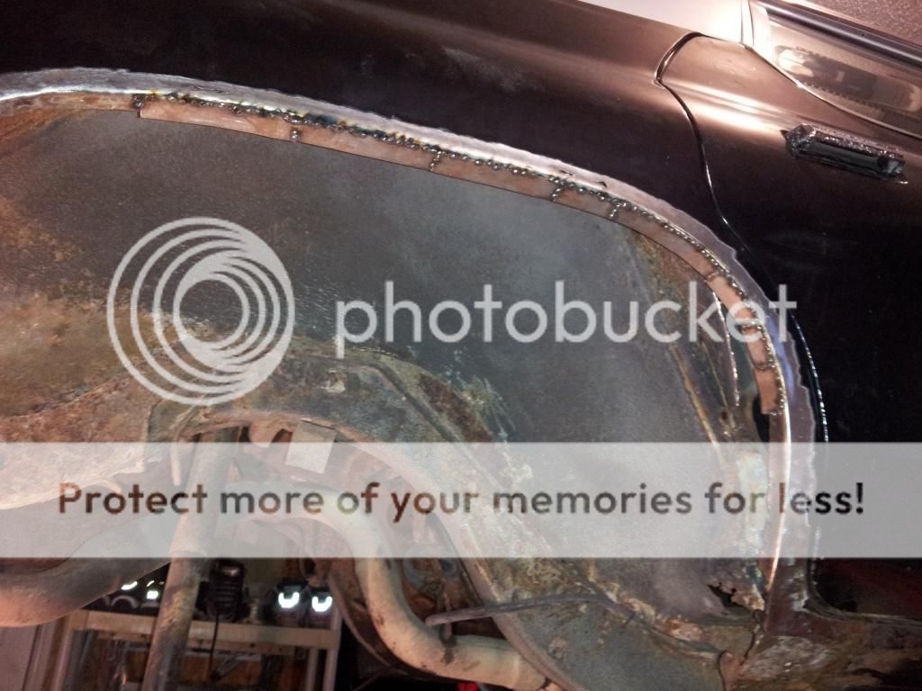 Welp, this is the best I'm going to get it I believe. The seam is not as bad as it looks. Its flush with the surrounding metal, and solid. I still have a pin hole to fill, and a couple small spots to grind down. Also wanna run a couple tacks along the backside, to be double sure its solid, and not gonna crack/fall apart from road vibration when shes back on the road. Then a bit of filler, and good to go.