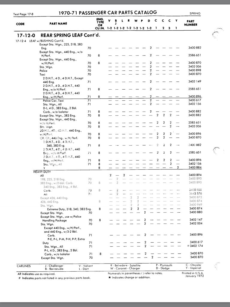 Yea I like that slightly rake'd look. All the 440 cars got the extra spring from what I'm told. NADA on the 383 cars though. I was going to go with the 7 leafs anyway until running into this little snafu.