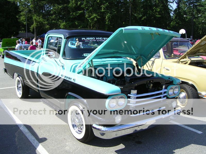 I love these trucks, built in 57 and 58. The cab style is completely different between them. I prefer the 57 but both are a tough find in complete condition as this one is. (The 1/4 panels were pirated from the 57 Dodge suburban 2 door).