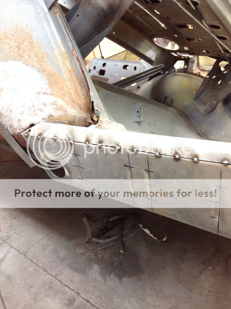 click...just clued in to this pic and the marker markings and something Paul said tonight...welp most woulda just made panel and installed but jussst now noticed Pauls guy also rolled divets into the panel for strength and to match prievious panel..something someone would never see once quarter was back on..lm impressed..