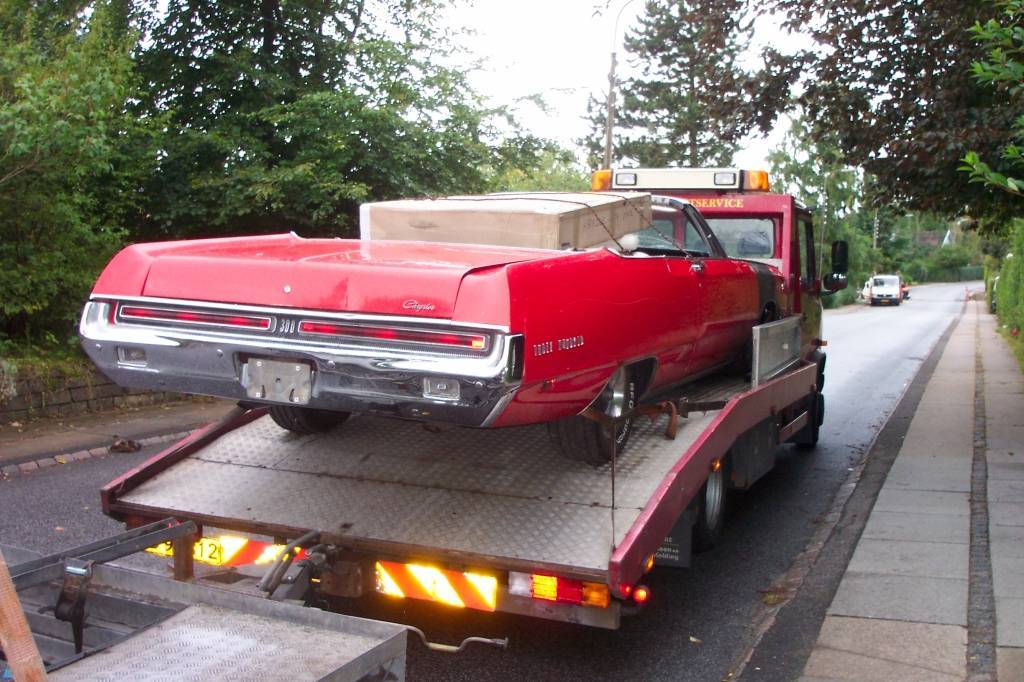 These first pictures, are from when the car arrived after a long journey, and was completely unable to do anything, except look amazing... However, it looked a lot better than is was. Rusty floors, trunk floor more "missing" than rusty.. Electrically DISASTER, engine had half-*** overhaul, wouldn't turn over, had a severely bent push rod, and the cam was completely shot. Both heads had some dead valves, but.. pistons were new and high quality, and the cylinders bored .30 over, nicely done.. and nice balanced steel crank.. go figure..