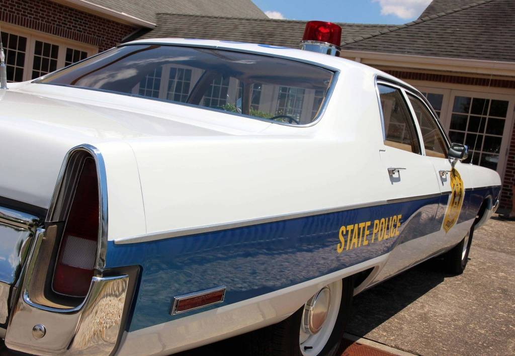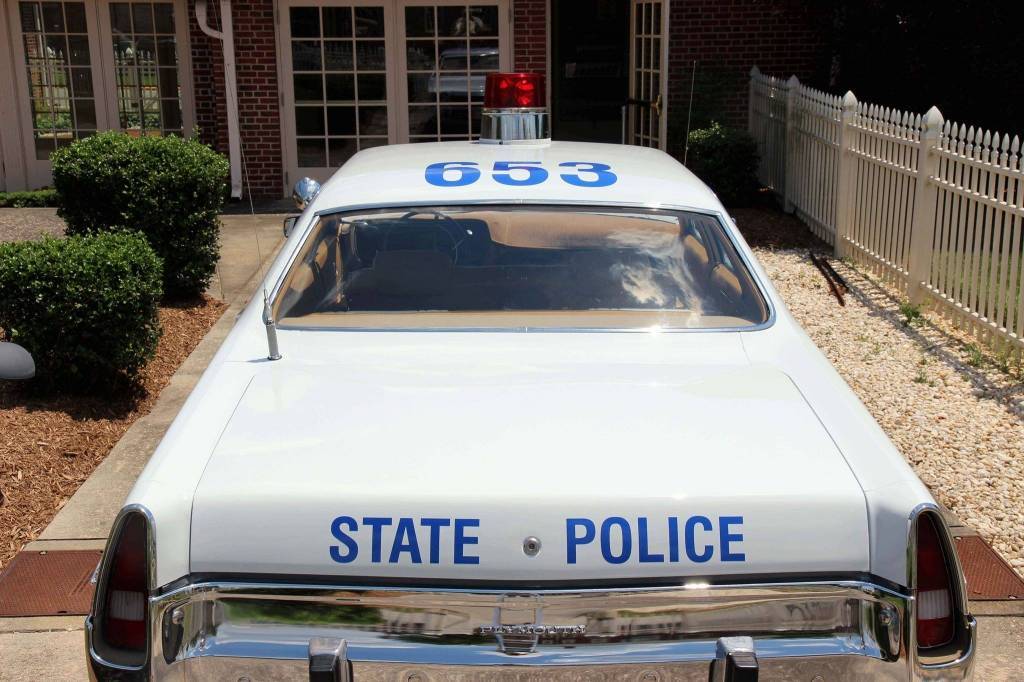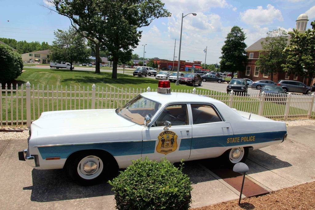 I also maintain a 1973 Plymouth Fury I which is a retired Montana State Police vehicle and is only equipped with a 3 speed trans and that great 440 4bbl. The vehicle was originally painted and restored by Trooper Ron Williams as a Delaware State Police Alcohol Safety Patrol car. Ironically, Trooper Williams was killed by a drunk driver prior to finishing his car. In the finished photos below showing the car in white and royal blue the number on the roof of the 73 was his badge number. Along with the new paint the car was restored to the original condition of a Delaware State Police Vehicle with the normal paint scheme and with all appropriate emergency lighting. Original factory paint codes were used to restore the car since they came to Delaware already painted at the factory. The 1973 is now a museum car and unfortunately will never be driven again.