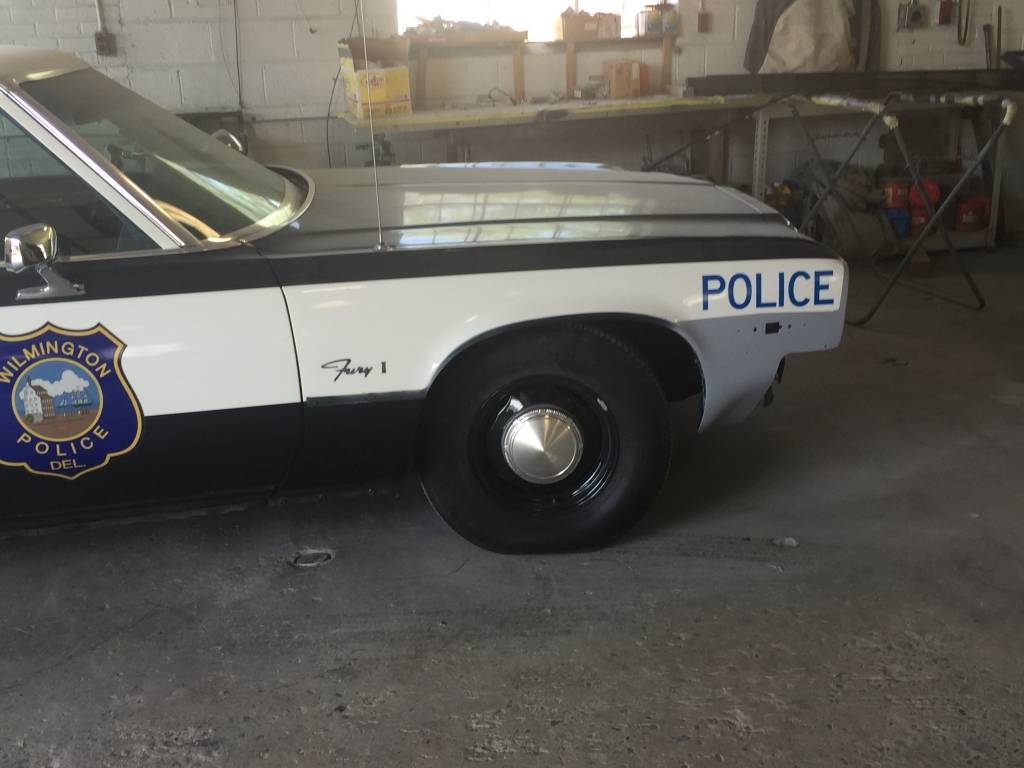 My good friend and I own a 1974 Plymouth Fury which was one of two purchased in 1974 by the Wilmington Police Department here in Delaware. Both were originally assigned to the detectives division and were not marked for patrol. But after numerous accidents one of the 1974’s was marked for patrol use in mid 1974. This vehicle was discovered in New Jersey and returned to Delaware where it was restored in 2004 by numerous members of the Delaware Antique Police Car Association. Since 2013 myself (Mike) and good friend Mike both started an extensive overall of the vehicle in my garage bringing it to a period correct state, with much information on equipment coming from retired members of the Wilmington Police Department. The vehicle is now equipped with all original emergency lighting, radios and sirens. Also in 2013 I overhauled the 360 V8 and it was returned to original condition. I'm hoping with the help from many of you I can find the appropriate place for many of the factory decals that are missing and I hope you can help me locate some interior trim pieces which have been beaten due to harsh police use as well as heat and just overall normal wear since 1974. I'm also in desperate need of a license plate light assembly which is broken and currently taped in place.