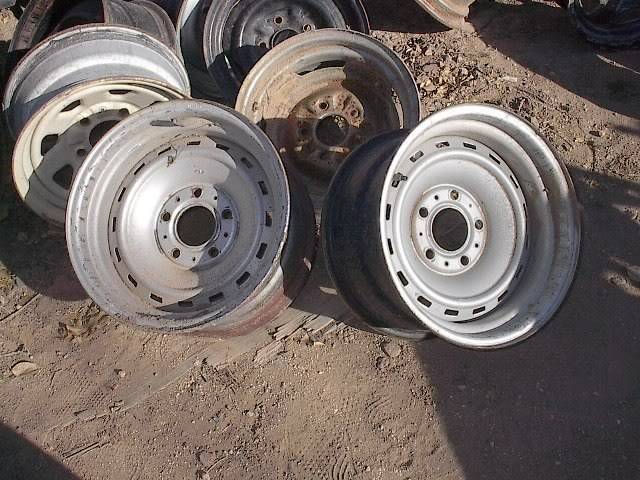 Mopar cop car wheels. Same wheel except for the "nubs" for the hubcaps.
