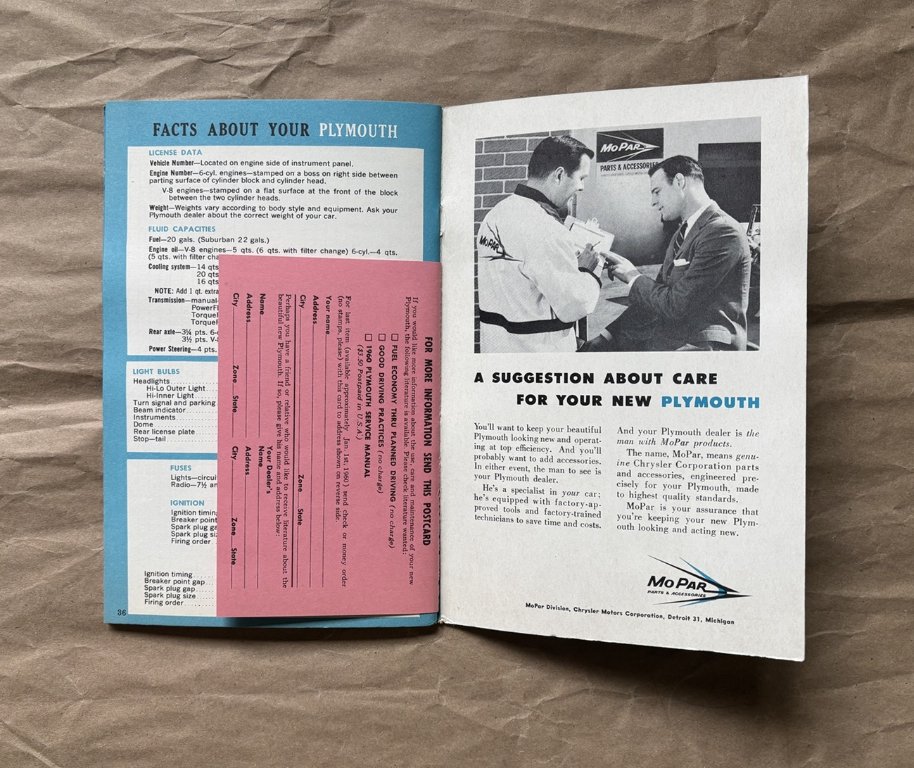 Overall Excellent condition. Still has the tear-out cards intact. Includes the separate "Owner Service Certificate" brochure