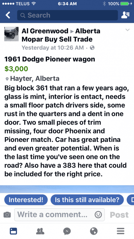 That's Bookface for ya. It's terrible to try and grab pictures and text and because it has no contact methods other than its own internal system you have no way to speak to the seller. Craiglist doesn't get used up here. 90% of everything for sale is on Kijiji or BookFace.