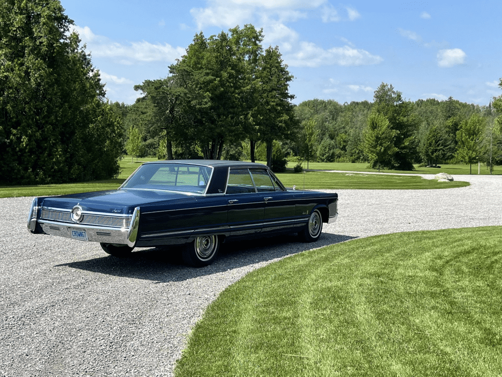 1967 Imperial Crown 4-door, hardtopThe car is in very good mechanical condition. There is only minor surface rust on the underbody, and no rust on main body panels. New tires (5 tires including the spare tire, but not white sidewall) were installed about 400 miles ago (2024). There is a complete original jack assembly in the trunk. The engine was completely rebuilt 3000 miles ago at the same time the engine compartment was painted. Electronic ignition modules was installed at the time. I have driven it with confidence on trips up to 300 miles long (one way 300 miles, round trip 600 miles long). Transmission was rebuilt and a new gas tank installed before I bought the car in 2014 when it had approximately 101,500 miles on the odometer. The original 4-barrel Carter carburetor is present and seems to work perfectly. The engine compartment was completely repainted and refinished in 2014 when I bought the car using an original Imperial color (Aegean Blue Metallic color) and the engine was fully repainted with the original turquoise blue color. The air conditioner compressor was fully rebuilt about 2 years ago, but the slide control for temperature adjustment stopped functioning (compressor runs, but air coming through the vents is not cold - perhaps a vacuum leak in the line that actuates the heater vents to provide temperature control). The AM radio is functional (including the telescopic antenna, but the radio intermittently shuts off at times. After about 20 minutes, the radio will work again (loose connection in the antennae wire??). The electric clock on the dashboard does not work. All other dashboard and interior controls work perfectly (power seats, light switches, speedometer, odometer, oil