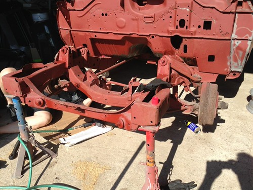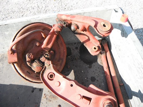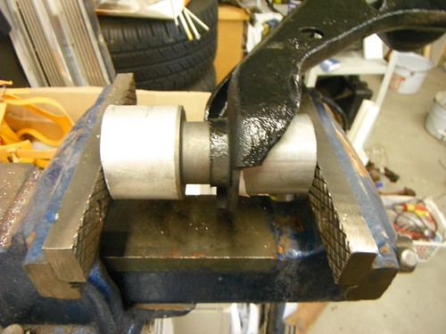 Last weekend I started to put the steering parts back together, upper control arm and the bushings going together: