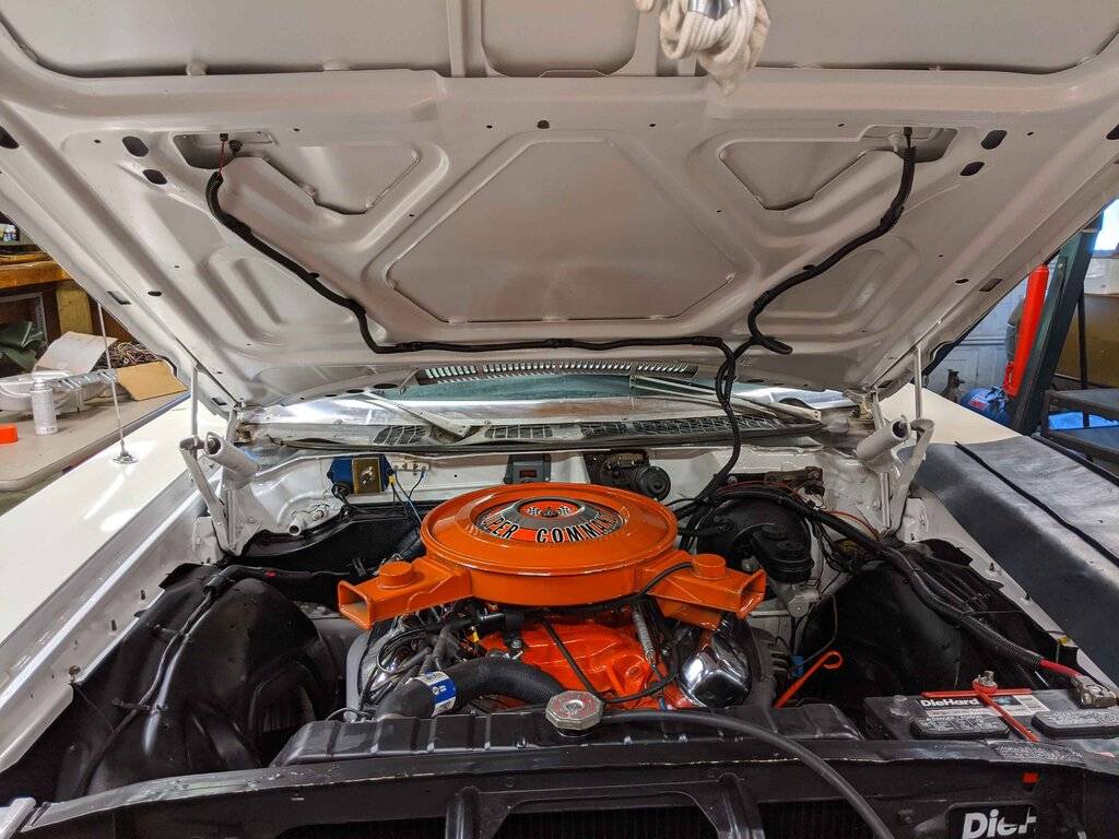 Car was a treasure trove of parts. worn but running 1969 440, 1968 727, 8.75 742 3.23 sure grip rear, front disc brakes, power brake pedal and booster, front bumper, working hidden HL grill, front bucket seats, wheel rims, trunk lock, misc. All of which went into this car.