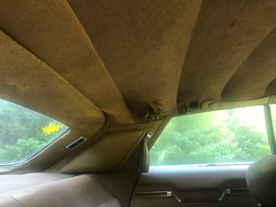There's massive rust behind the left rear wheel,. Very hard to see, but if you look close, that panel is half way gone. Plus the rust underneath the vinyl. That gives you an idea how much rust you'll find in the trunk, floorpans etc.
