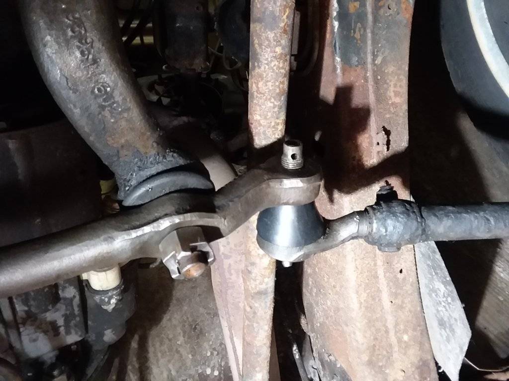Steering Linkage Center Link: not really a hard job: add 2 dust boots for ITRE, torque all 4 nuts at 40'lbs, install 1/8" cotter pins, and grease the 4 fittings. Biggest problem was that my grease gun stopped pumping grease, and I had to get a new canister, even though there was 2-3 inches of grease left in the old one. It's an air compressor powered grease gun. Not sure why that happened.