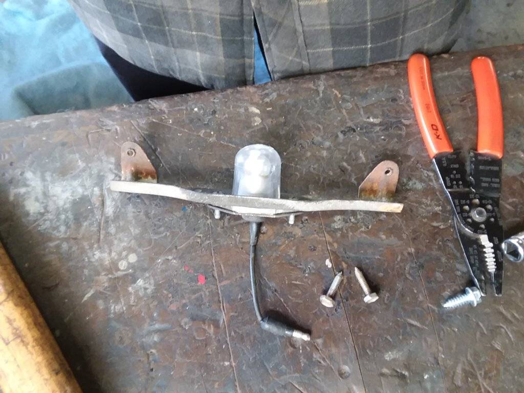 Cleaned license plate lens and sprayed socket with WD40. GE 67 bulb, old, but in operating condition