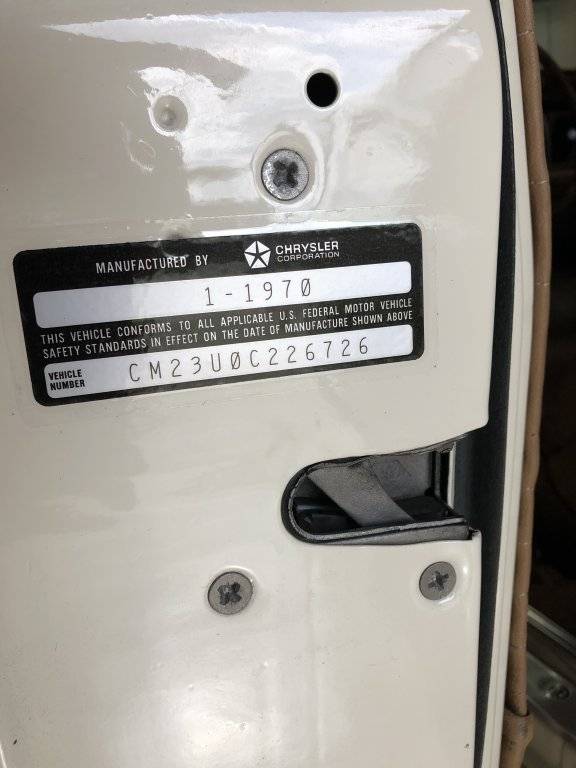 226726 ?? This is Trace's car. J99786 Has repro January door sticker for the 125 Fender Tag date, required by ECS and Chrysler agreement. See below.