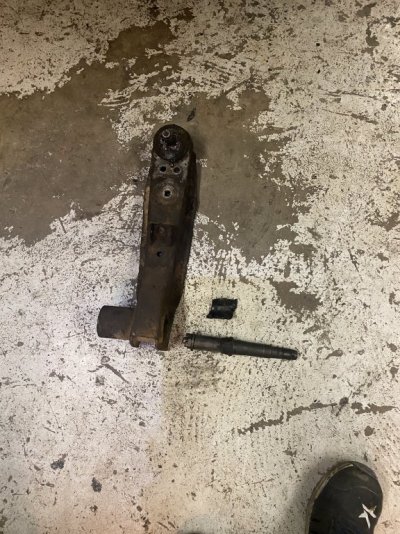 Instead of welding in a washer as I have seen youtubers do to get the outer sleeve of the bushing out, I threaded in a M42 tap and pressed on that. Of course this only makes sense if one has access to an appropriate tap. The inner diameter of the sleeve is 1.57".