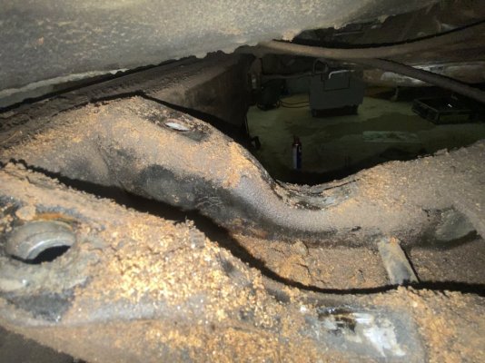 The car is full of red sand. I assume this is how the soil looks in Arizona and/or California? It is bonded to large parts of the underside of the car with presumably leaked out and dried up power steering fluid:
