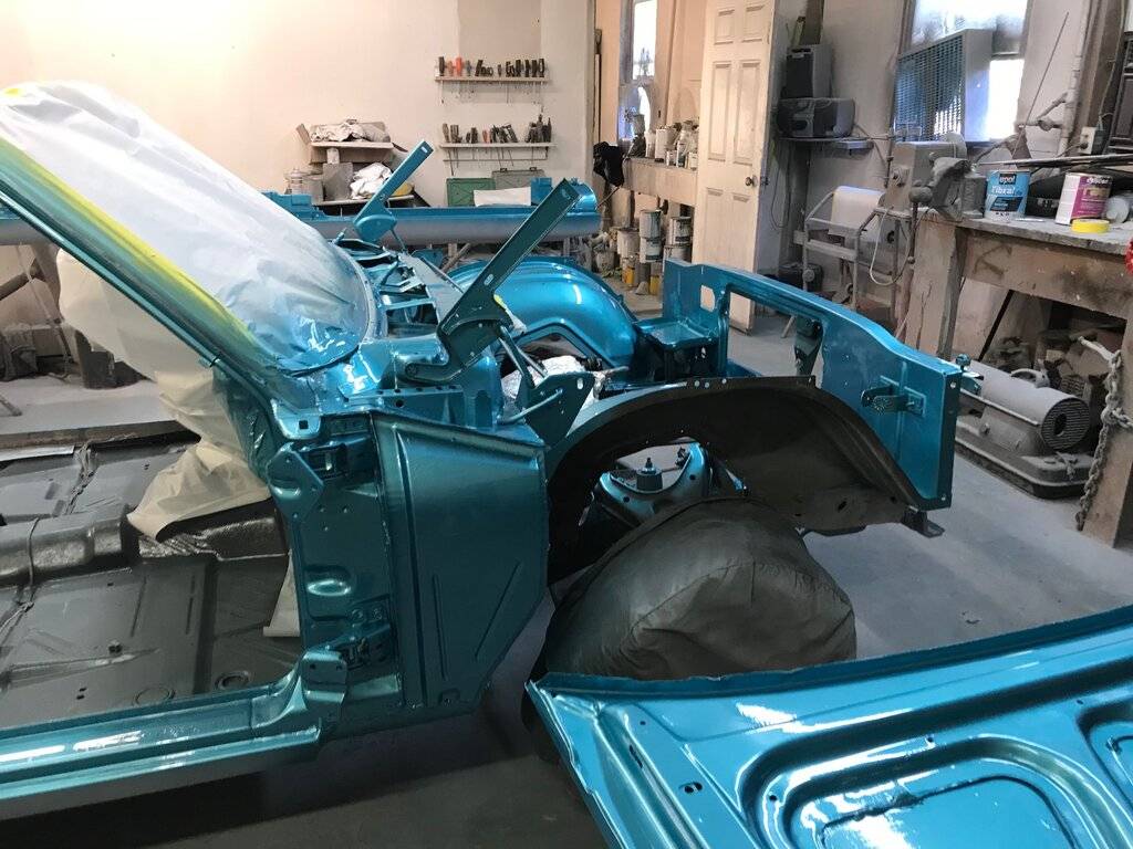 Welded in the donor quarter panels and began grinding down the welds. Also cut out and welded in the trunk pan and drops.