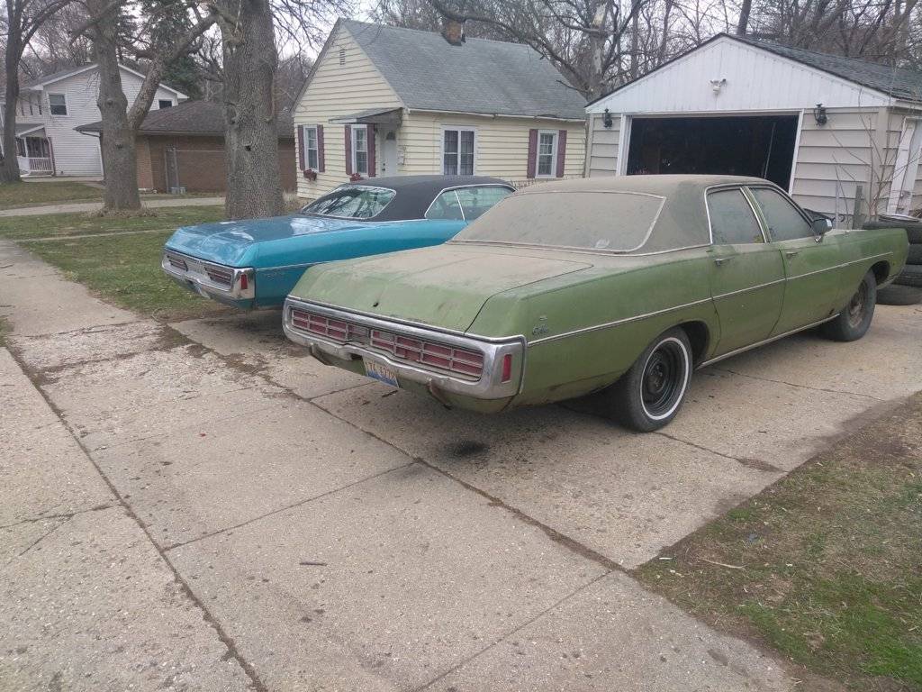 I feel like if I had that much property, there would be alot more cars... Ideally, I'd like to start a Mopar salvage yard, so it's going to be time to expand soon...very soon. I do have my other cars at the shop across town. My basement has two large rooms filled with c body parts. I have a spare bedroom upstairs that has my glass and dome light collection in it. My garage is bursting at the seams... I don't think I've ever caught the Mopar bug this bad...all it took was a few years in a rusty green 71 Dodge and I've been hooked ever since. Baby Wyatt and my Sister in Dad's 71 in the 90s. This is the reason why I am oddly attached to this Monaco.