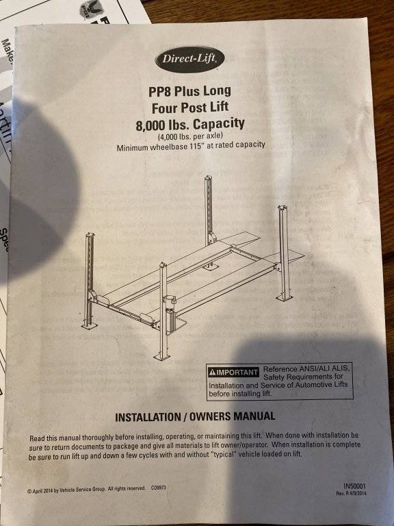 I have a 4 point lift 8 Plus long 8,000 from Direct-Lift