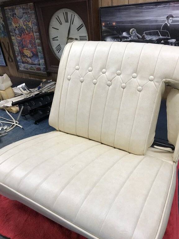 Got some pics from the shop. Pleased with progress on seats. Pleats, moveable armrests, piping/welting, diagonal stitching with buttons, all were a high end addition for seats, “back in the day”. I’ll post more pics when I get them.