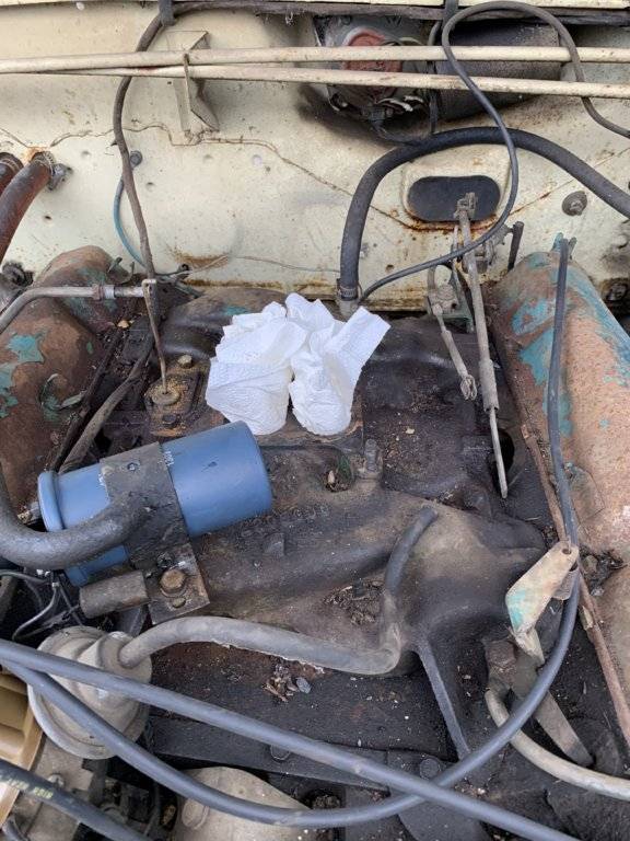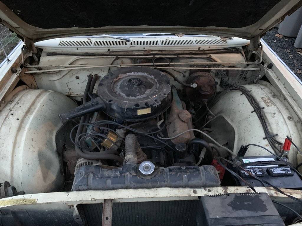 After replacing the ignition parts the car started and ran for about 30 seconds! Fuel pump is working but the carb is shot. Massive fuel leaks from all over the carb. Need to take it off and rebuild it. Also took a couple pics of the interior after cleaning the mold and dirt off the seats. All the interior dome lights are working too!