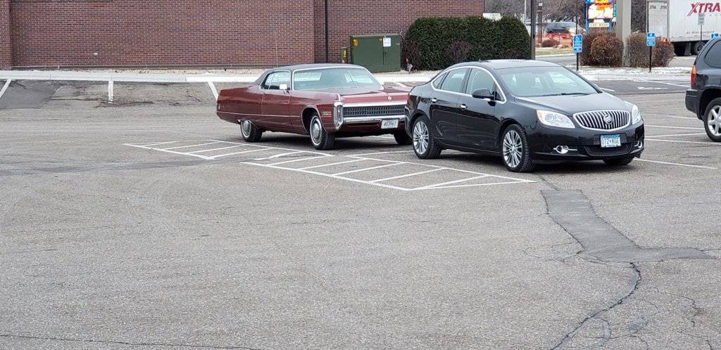 Here's a better view where I usually park so i can watch her from inside grocery. She gets alot of attention for an Oldsmobile.What ?!? Wells Fargo is now in the grocery business? I knew they were effed up, but geez. . .