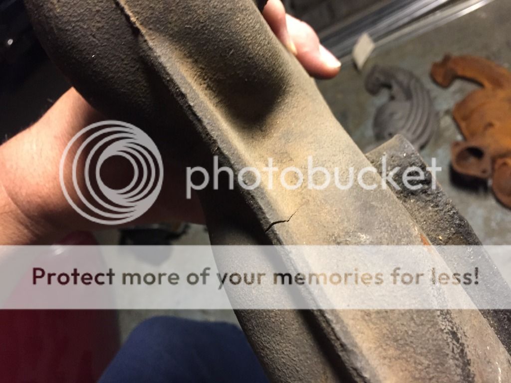 pass side HP exhaust manifold with small crack starting on top rear fin of manifold $69