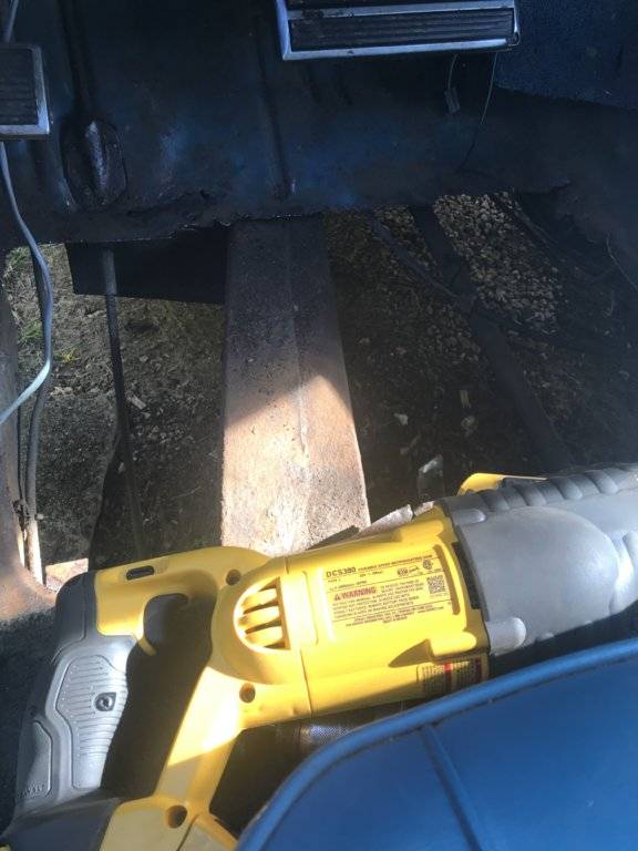 What usually causes the drivers side to rot out before the passenger side is the fact that decades of people climbing in the drivers seat with wet shoes and it saturating the carpet and soaking into the insulation, creating a layer of moisture between the floor pan and underlay. From the factory there was minimal coating on the floorsCut out a lot. Didn’t damage speedo cable or anything else. Rust on the stub frame is in the area. Wonder if the car sat with flat tires for a while. Passenger side doesn’t have this problem.