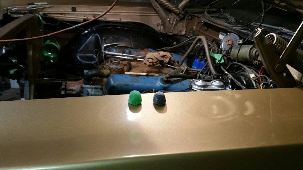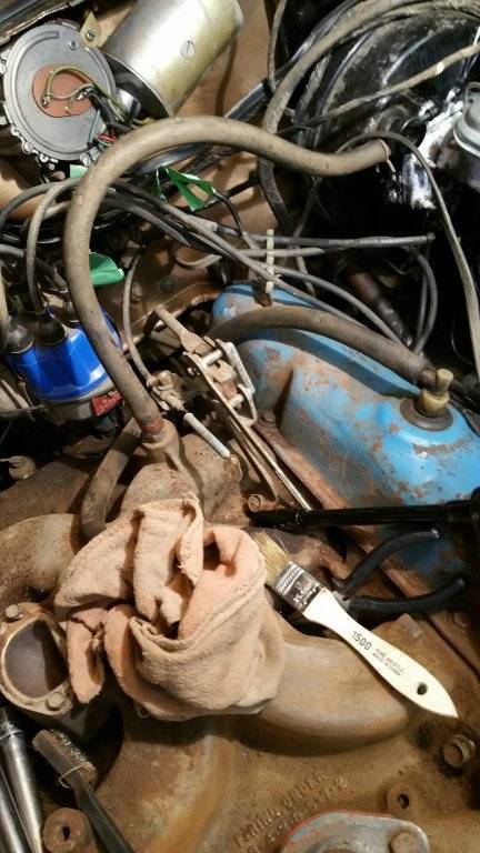 anyway dosnt look like much right now but hood,grill area,both fender sides,cowl cleaned and prepped and ready for paint,got intake and few other things along with fenders prepped...tomorrow l hit front frame inside engine bay and lower parts of engine and power stearring pump and assorted parts.