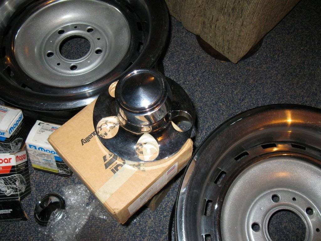 $600 to rechrome roadwheel caps or $ 80-100 to powdercoat silver chrome color.....or can use this nos set l have....thoughts ?...like the free part but like the gear style better