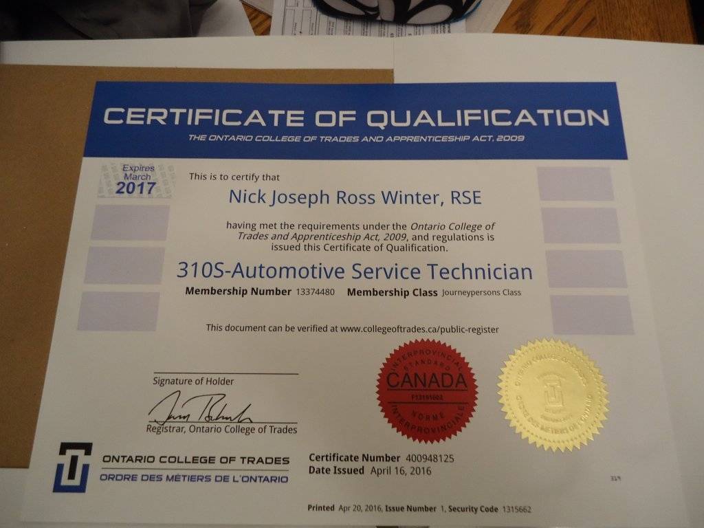 Licensed Automotive Service Technician #400948125......and yes, I'm still only 20 till November.....