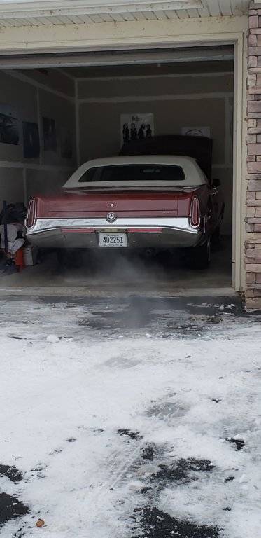 Snow on the ground. But, still going to enjoy running Old Red in the garage all winter long.