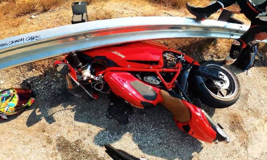 I swear to god that guard rail is less than a month old as another member of this clown posse crashed there 3 weeks ago and it was not shiny. (I can't keep up)