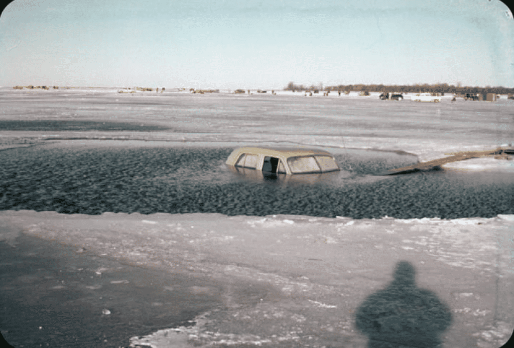 "Dunk the clunk" back in the day this was done every year. Place an old car on the ice next to a road/boat launch where everybody could see it. A local establishment would take bets on the date it fell through the ice and have prizes. One more thing you can't do anymore.