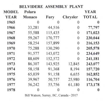 Hope the attached is okay. It lists all the C body makes built at the Belvidere plant from the opening of the plant to the end of the C body. Production numbers are for the model years