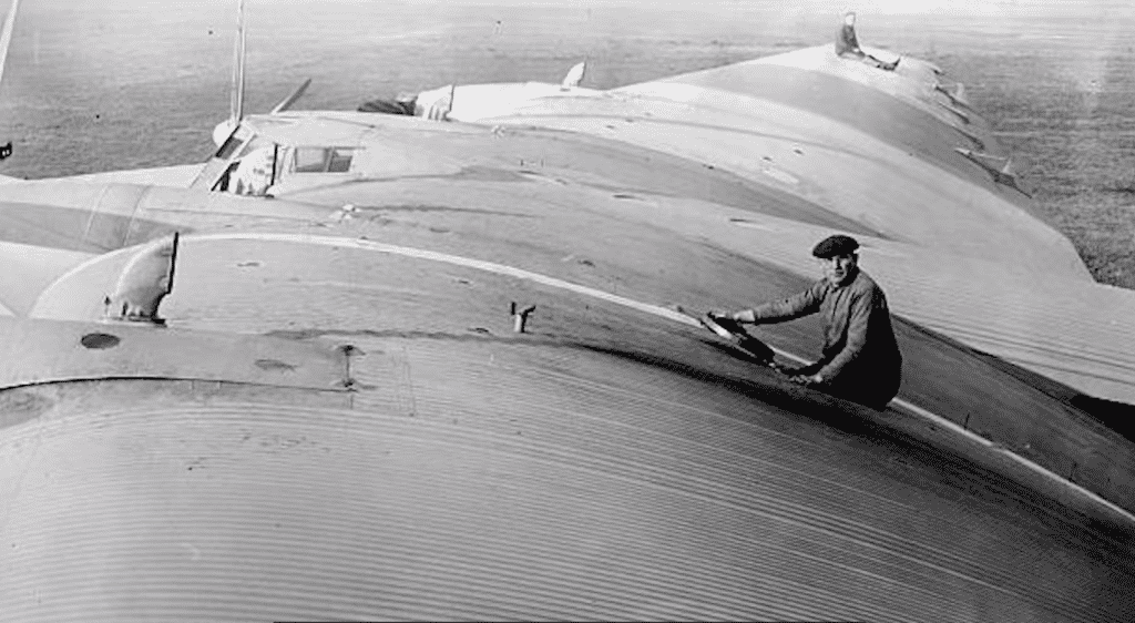 Junkers G38. Distant "granddaddy" of the flying wing. The wing as aerodynamic structure, plus passenger/cargo space. This was 1929.
