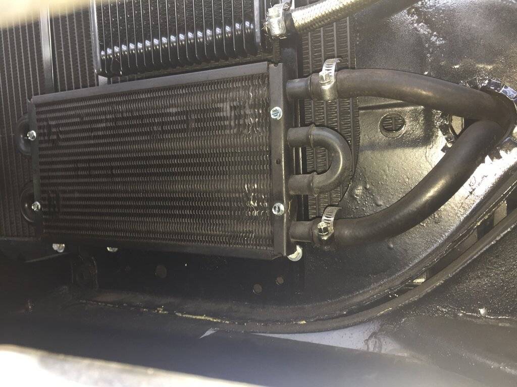The reman TRW did well this afternoon. I flushed the system w nearly 3/4 gallon of new fluid, then burped and bled the system with the last quart. Those 5/8" return hoses require some SERIOUS turn radius to avoid kinks! Since I'll use the length for the cooler when it arrives and is suitably prepared, I don't mind leaving a big loop of hose under the hood for now.