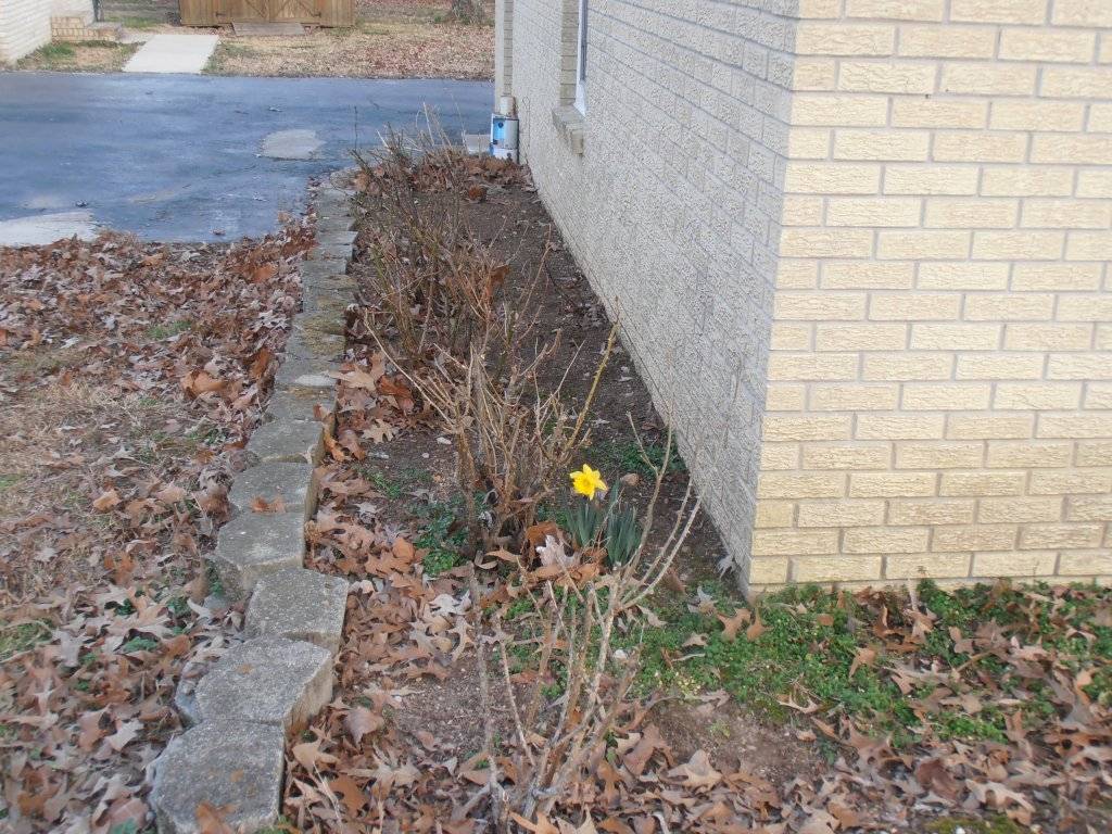 Now, the best part of this all is that it's 50 degrees today and all the snow has melted. You can see where it's not draining. That puddle was larger. I had a guy that was supposed to put in a french drain, but he never came around.