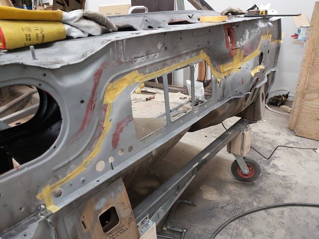 You continue to do great work.Some new progress. Firewall FINALLY back in place ! Inside surfaces painted two coats of epoxy, and PU topcoat. All the hard to reach corners I sprayed with cavity wax spray gun (..yes, epoxy and Pu..), it dosen't look like so nice but more important is good layers of paint. After welding back together all seams taped and then more PU paint ( that also have rust inhibitors) from inside to fill all caps. Afterwards finalizing with pu sealer. I think this will last at least next 50 years..I hope!