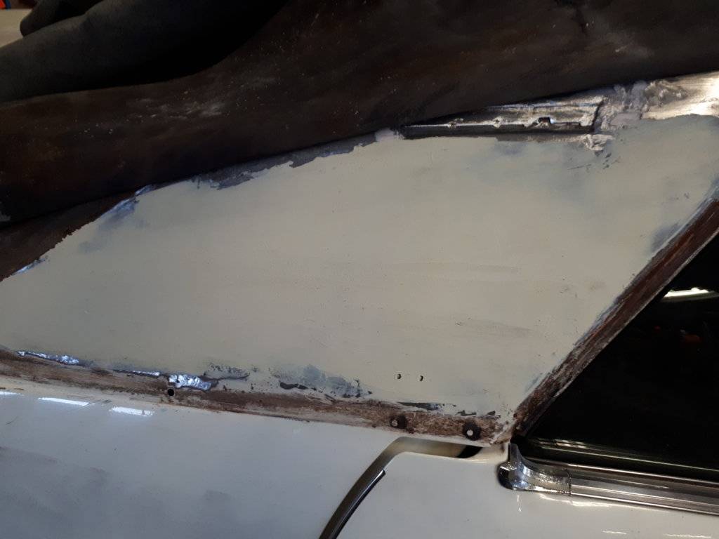 Today´s visit (again) included sanding, but also I painted the trunk partially with primer and the metal surrounding the license plate lamp, so I can assemble the whole panel that has also the reverse lights mounted to it.