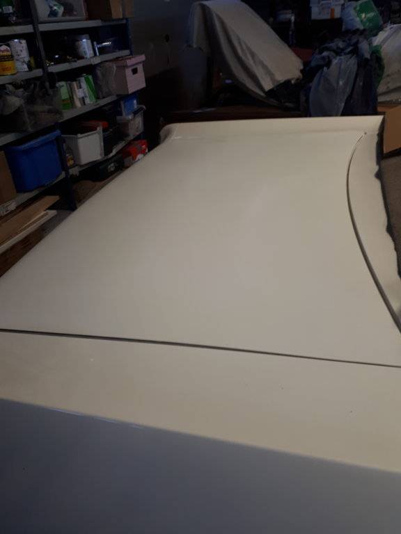 Today sort of mid paint (too yellow for final coats) was sprayed down to cover the primer as well as to show possible grease, holes, whatsoever to sand before spraying the white paint.