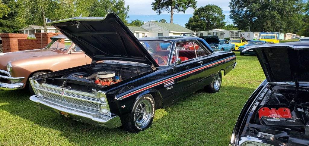 In Wisconsin. I believe it's made from various parts and pieces from an old iron works factory that used to be there. There's other large pictures and decorative art with the same motif of the factories that used to be part of the community.Great car! Love that flag background, where is that and what is it made from?