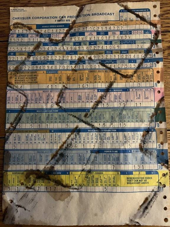 As with fender tags, different plants handled the sequential numbering of broadcast sheets differently. My area of interest is the St. Louis plant but if I recall correctly, the Hamtramck plant numbered sheets using consecutive sequential numbers. Barry compared this sequence number to determine the number of units apart. I’ve not looked into sheets from the Jefferson plant in detail but I think Jefferson used the same method. This method provides a much more reliable relative build sequence comparison than anything else. Remember, plants handled sheets differently. What happened at Hamtramck didn't happen at St. Louis and both may have been different than Newark.