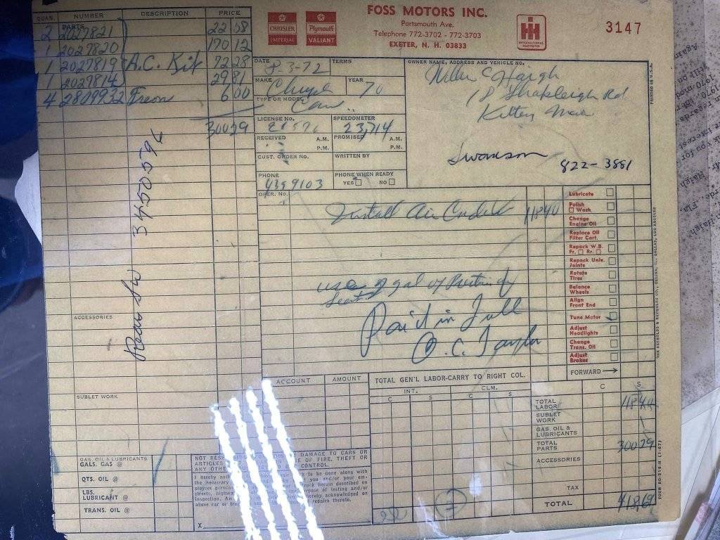 I really thought this tag was posted before somewhere in this thread. He has lots of documentation, including the receipt for the ac install in 1972 and a letter from Chrysler stating only 903 1970 ‘verts were sold.