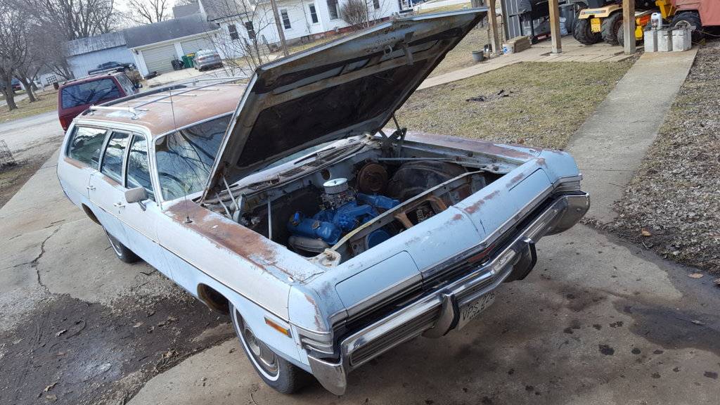 Everything I can front floors not good sub frame pretty bad from the guys moving it around both passenger doors pushed in. Tailgate push in pretty good also no paperwork and I'm sure the motor probably won't turn carbs been off who knows how long. This wagon will help my 2 wagon's and a buddy's 71 Police wagon does have power windows and 9 passenger seat.What parts are you taking off of it, 70SS...?