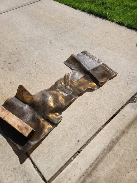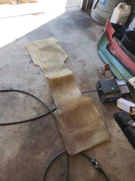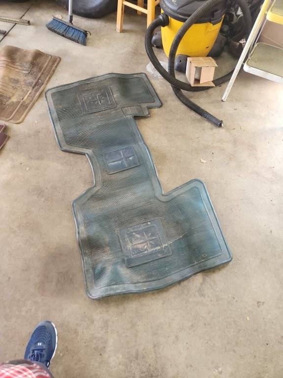 Do you still have? Thank you!I have a full width front mat with Chrysler parts" stamped into it that is intact that can be used to make a repro, if anyone is interested? I tried to paint it black using tire paint but it remained sticky indefinitely also probably won't be using it in my car.