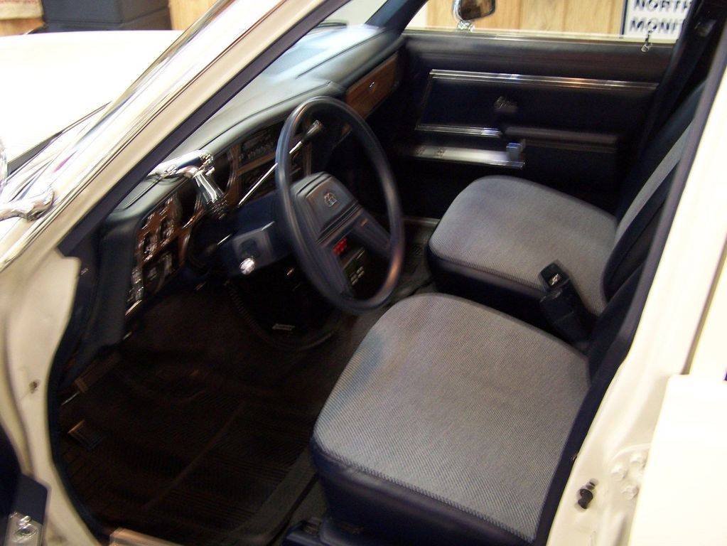 I owned a 1988 Police Diplomat, so I can verify the interior. Mine was a silver Salon with the same blue interior and the same seats: a velvet material. It did not wear well, and I had the driver's seat reupholstered. My car had more options: power locks, power windows, power mirrors, and semi-automatic AC. The only discrepancy I can see is the thermoquad: this era should originally have had a quadrajet, as mine did.