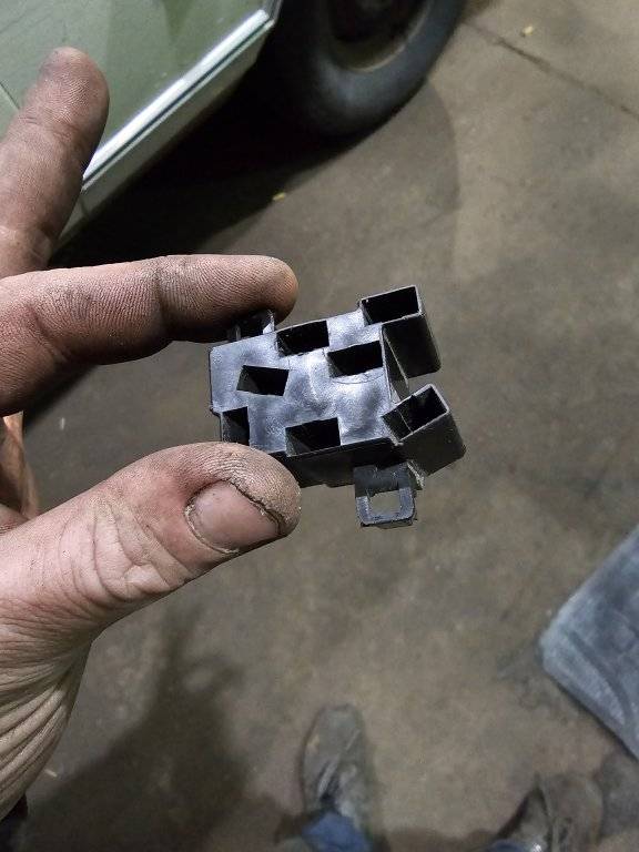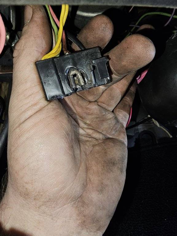 I pulled back in and immediately got my test light out and started checking fuses on the left side of the fuse block. They all checked out good. So I was left to do some thinkin...I dont have an FSM for a 73 but something was screaming in my head...its not a fuse? Head light switch. Headlight switch. So I pulled the HVAC vent tube out to access the back side of the dash, reached in, pushed the button and pulled handle out of the switch. Now I can unscrew the collar and drop the switch out. When I did that, I observed the pigtail was melted a little. Hmm weird. I changed the switch and tested it. Dashlights working as intended. I reinstalled the switch and put the hvac tube back in place. Pulled the switch and again...no dash lights? WHAT!!! I stepped on the brake pedal...and again had lights. You gotta be kidding me! I pulled the hvac tube again and reached up behind the switch and started to make sure the connection was still secure. Dash lights blinked a few times. I dropped the switch back out and observed that the melted part of the pig tail was loose. I wiggle that terminal and had dash lights flashing. The terminal then crumbled and fell apart...great.
