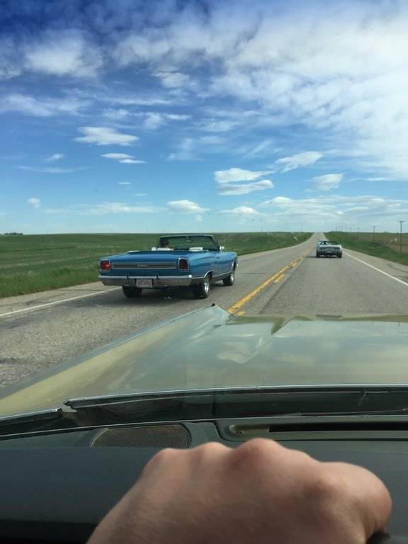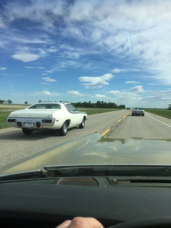 Let's hope the other 3 aren't going to do the same thing. I see the club (Northern Mopars) president (Blue GTX) passed you along with the parts manager from Tower (white Runner). The weather was much better than Friday afternoon, though.