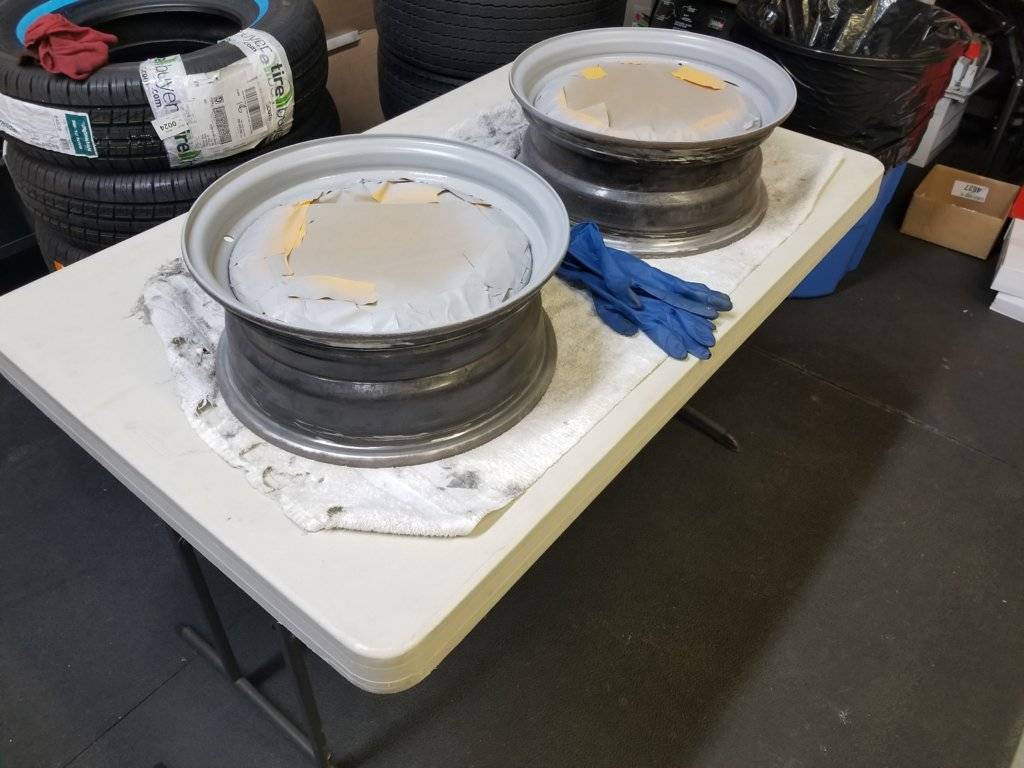 Finishing up painting the road wheels tonight, getting them ready for the new shoes. Even with wearing a mask, my heads spinning from being in the home made paint booth.