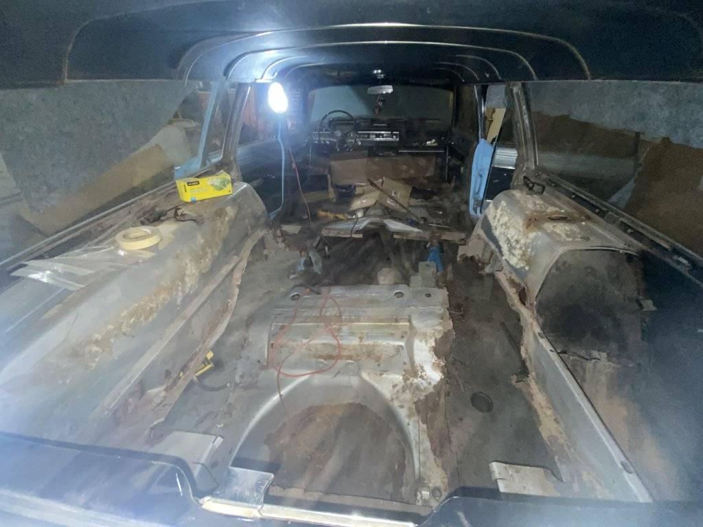 Pounds of mould in there. All hiding under the carpet, trim etc. Stub frame is so bad it punched through the floor in 3 places. The frame gave up before the bolts holding the leaf spring bracket did. And the capper is that the entire seam joning the right half of the car to the floor/frame completely evaporated. Nothing was tying the right rear to the structure of the car. No wonder it shimmied so much.